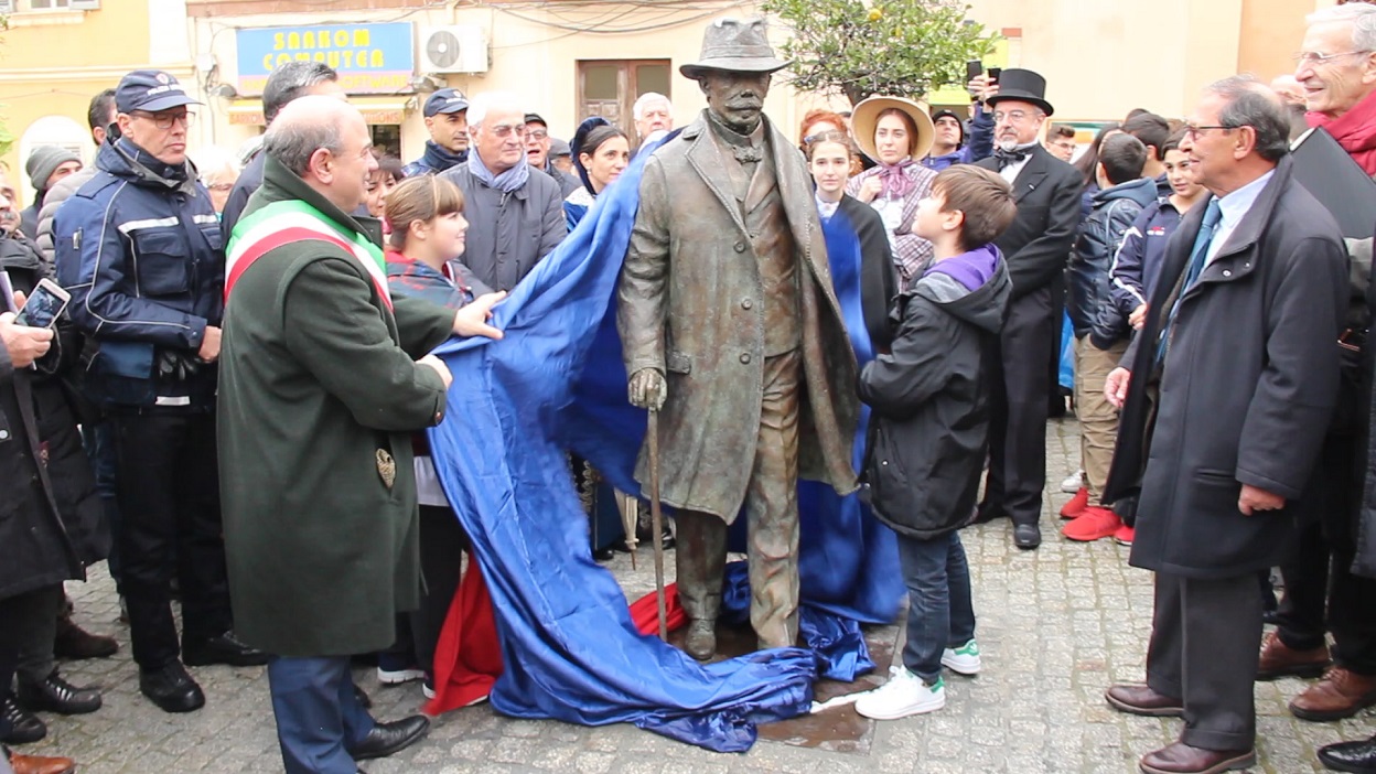 Il monumento a Enrico Costa è finalmente in piazza Fiume. La statua in bronzo a grandezza naturale è stata inaugurata ufficialmente lunedì 17 dicembre di fronte a un pubblico numeroso formato da curiosi e scolaresche. A scoprire la scultura di “Enrichetto”, ricoperta da due drappi rossoblù, sono stati alcuni bambini accompagnati dal sindaco Nicola Sanna e dal presidente del comitato promotore, Toto Porcu.