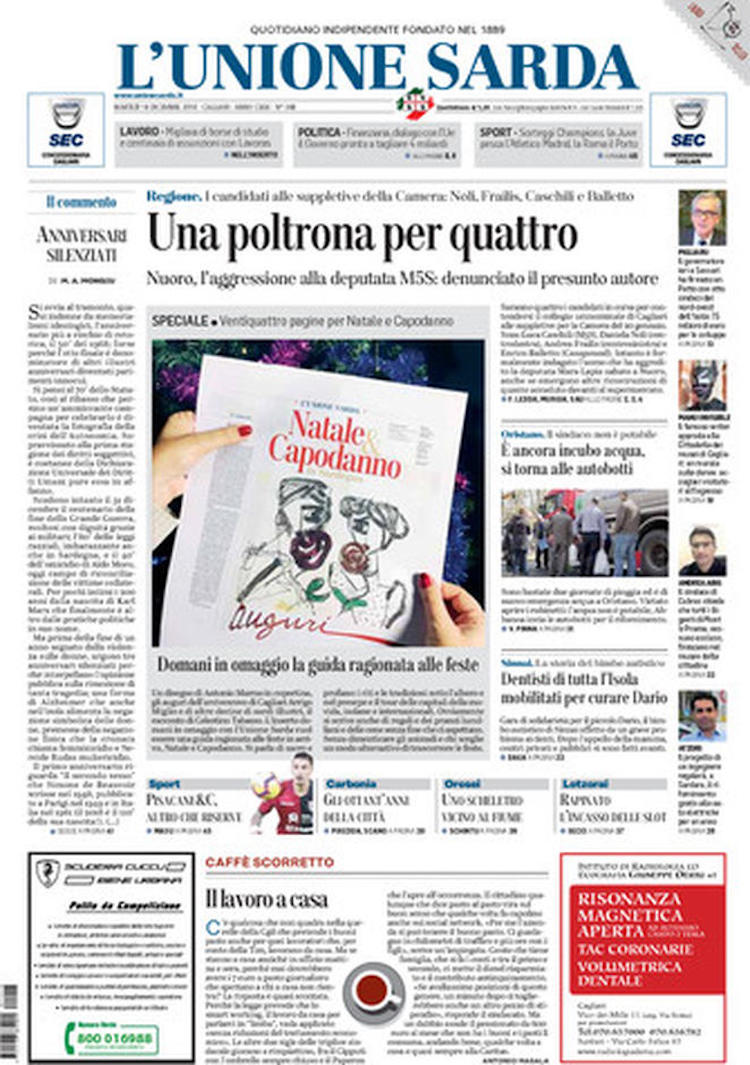 Uncategorized Rassegna stampa 18.12.2018 Rassegna stampa 18.12.2018 Da Redazione Cagliaripad - 18 Dicembre 2018 ARTICOLI CORRELATIALTRI ARTICOLI DA QUESTO AUTORE Uncategorized “Passerella rovina dune a La Caletta”, esposto cittadini Uncategorized Sardegna: da oggi sei Province e due Città metropolitane Uncategorized Comunali: slittano in autunno anche in Sardegna Uncategorized Muravera, nasce in villaggio turistico area dedicata a ospiti con disabilità Uncategorized Laconi: litigio tra automobilisti, un denunciato per danneggiamento e minacce Uncategorized Cagliari, occhio alle multe: ecco gli autovelox del mese di aprile 2021 - Pubblicità - Ultime notizie Gimbe: “Sardegna agli ultimi posti in Italia per ciclo vaccinale completato” 31 Marzo 2021 Covid in Sardegna, Gimbe: “In una settimana casi in aumento del 56,8%” 31 Marzo 2021 Festino ‘clandestino’ a Cagliari: 12 sanzioni una denuncia 31 Marzo 2021