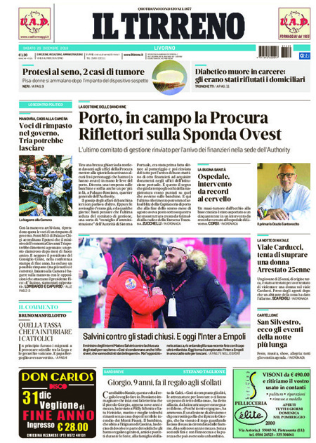 Uncategorized RASSEGNA STAMPA 29-12-2018 RASSEGNA STAMPA 29-12-2018 Da Redazione Cagliaripad - 29 Dicembre 2018 ARTICOLI CORRELATIALTRI ARTICOLI DA QUESTO AUTORE Uncategorized “Passerella rovina dune a La Caletta”, esposto cittadini Uncategorized Sardegna: da oggi sei Province e due Città metropolitane Uncategorized Comunali: slittano in autunno anche in Sardegna Uncategorized Muravera, nasce in villaggio turistico area dedicata a ospiti con disabilità Uncategorized Laconi: litigio tra automobilisti, un denunciato per danneggiamento e minacce Uncategorized Cagliari, occhio alle multe: ecco gli autovelox del mese di aprile 2021 - Pubblicità - Ultime notizie Gimbe: “Sardegna agli ultimi posti in Italia per ciclo vaccinale completato” 31 Marzo 2021 Covid in Sardegna, Gimbe: “In una settimana casi in aumento del 56,8%” 31 Marzo 2021 Festino ‘clandestino’ a Cagliari: 12 sanzioni una denuncia 31 Marzo 2021