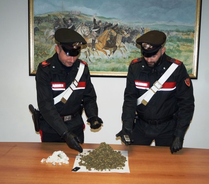 I Carabinieri, dopo numerosi pedinamenti e servizi di osservazione dovuti al fatto che l’arrestato non abitava presso l’abitazione di residenza, ma nella casa della fidanzata, hanno perquisito l’abitazione e hanno trovato e sequestrato circa mezzo Kg di marijuana e materiale vario per il peso e il confezionamento. C.A. è stato tradotto presso la propria abitazione in regime di arresti domiciliari.