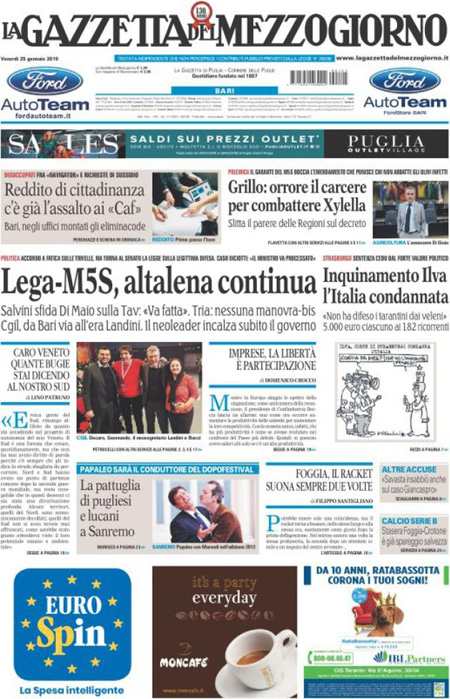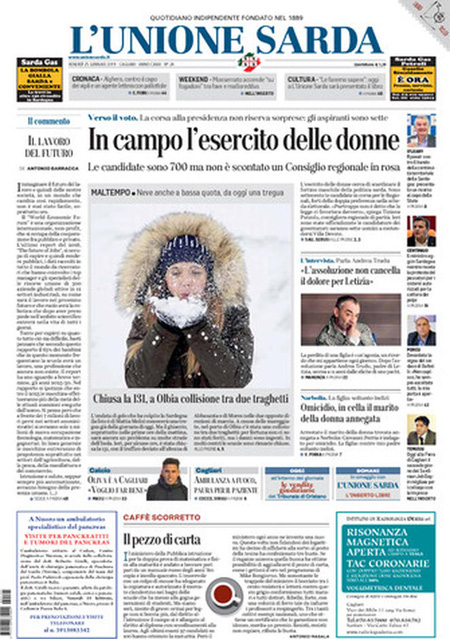 Regione Rassegna stampa 25-01-2019 Rassegna stampa 25-01-2019 Da Redazione Cagliaripad - 25 Gennaio 2019 ARTICOLI CORRELATIALTRI ARTICOLI DA QUESTO AUTORE Regione Ryanair: nuovi voli da Cagliari per Malta, Palermo e Rimini Regione Contributi a favore del mondo dello spettacolo: Regione pubblica il bando Regione Regione, Cocco (LeU): “Nell’Isola mancano vaccini e quelli che ci sono si sprecano” Regione Vaccini, al via tra polemiche somministrazione a dipendenti della Regione Regione Vaccini: 500mila dosi dello Sputnik a sardi, l’idea piace a Pais Regione Regione, Zedda: “Somministrazione vaccini poco trasparente ma per Solinas va tutto bene” - Pubblicità - Ultime notizie Gimbe: “Sardegna agli ultimi posti in Italia per ciclo vaccinale completato” 31 Marzo 2021 Covid in Sardegna, Gimbe: “In una settimana casi in aumento del 56,8%” 31 Marzo 2021 Festino ‘clandestino’ a Cagliari: 12 sanzioni una denuncia 31 Marzo 2021