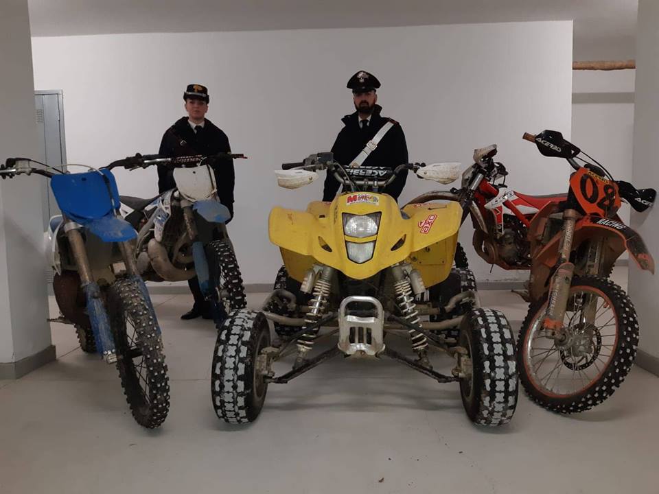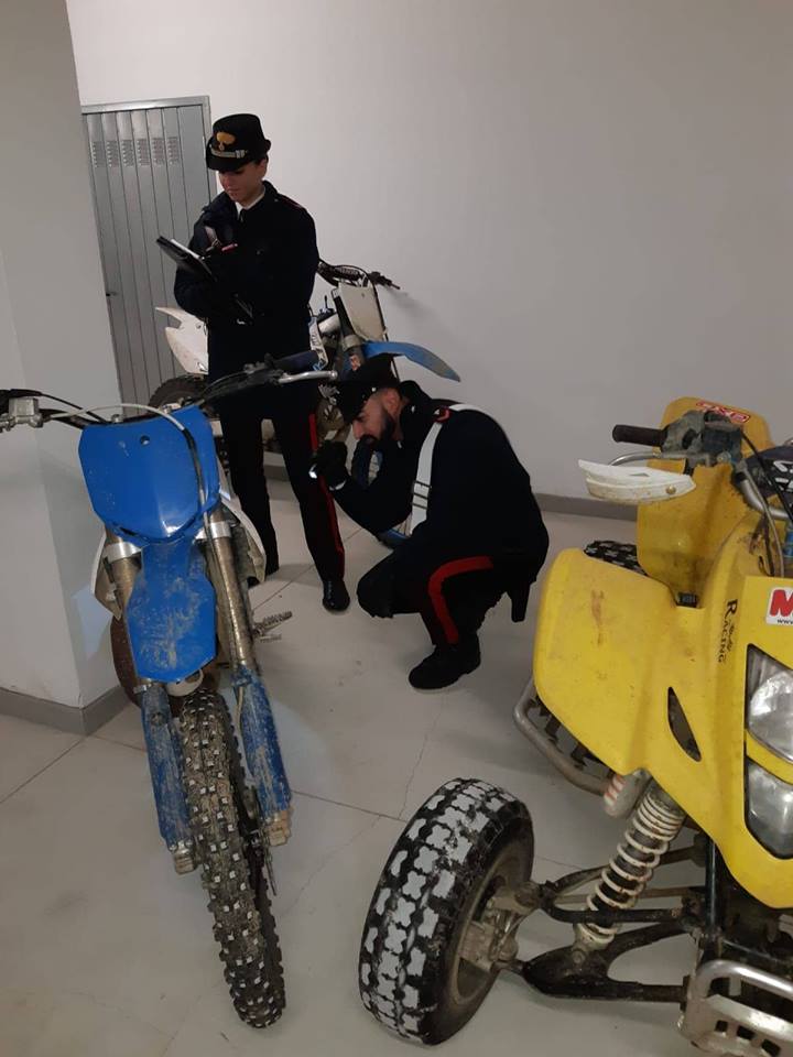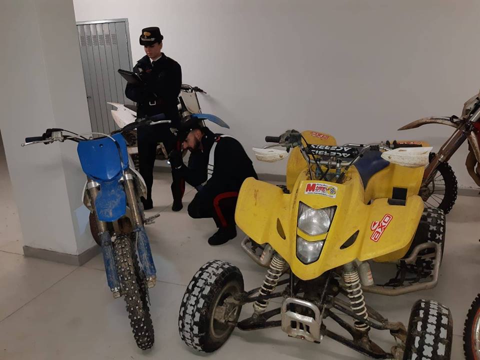 Verso le ore 12:00 di ieri mattina, a seguito di una perquisizione domiciliare, i militari hanno rinvenuto quattro motocicli da enduro ed un quod, tutti con i telai contraffatti. Precisamente si tratta di: una moto Beta serie 300X Tuciner, 250 cc; una moto TM Racing, 300 cc; una moto TM Racing, 85 cc; una moto KTM 85SX, 125 cc; un quod Suzuki LTZ, 400 cc.