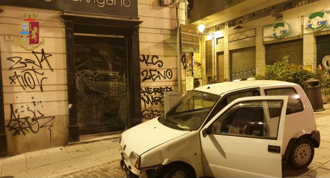 Uno degli equipaggi, giunto sul posto, ha subito notato un’autovettura Fiat 500 con la parte frontale incidentata, il paraurti in terra e la vetrata del negozio infranta dall’auto stessa.