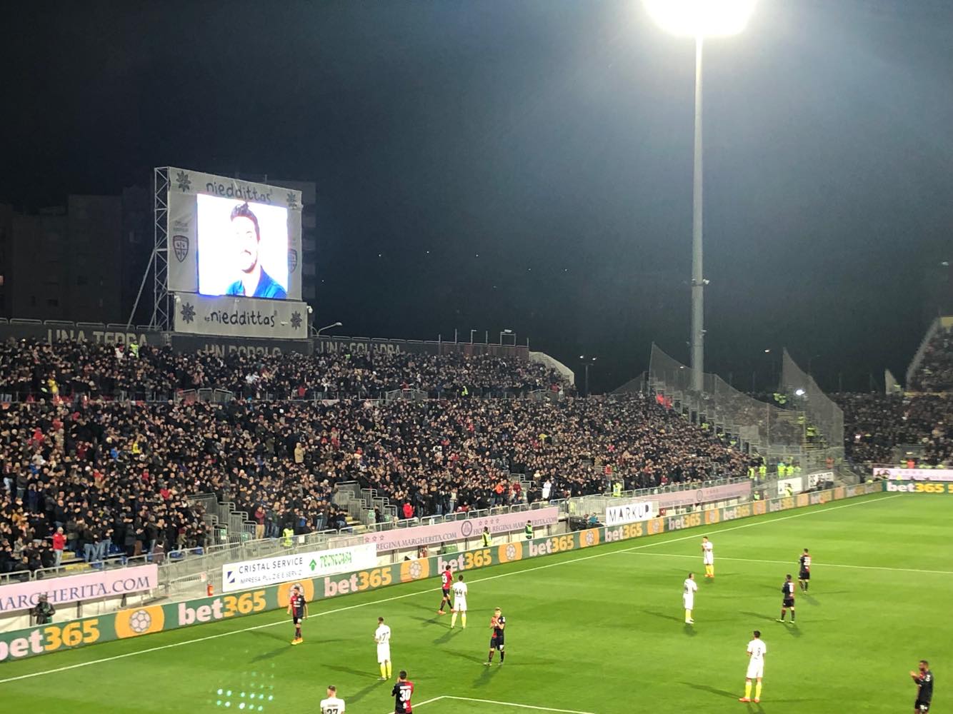 Uno stadio emozionato e commosso, che al 13esimo minuto si è fermato insieme alla squadra e tra gli applausi ha gridato un solo unico grande nome: Davide Astori. La Sardegna Arena in piedi per rendere omaggio a quel giovane ragazzo che troppo presto è andato via. Un esempio fuori e dentro il campo.
