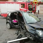 Due auto si sono scontrate e due persone sono rimaste ferite gravemente, sul posto i mezzi del 118, i vigili del fuoco che hanno provveduto a mettere in sicurezza l’area e le persone coinvolte e i carabinieri che hanno fatto i rilievi.