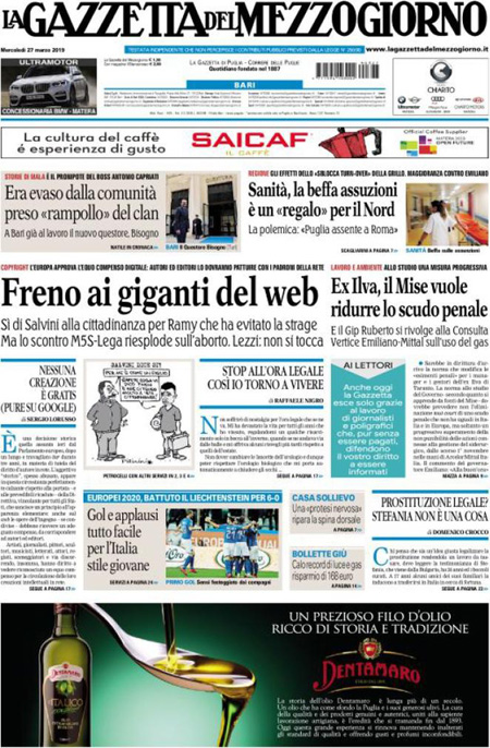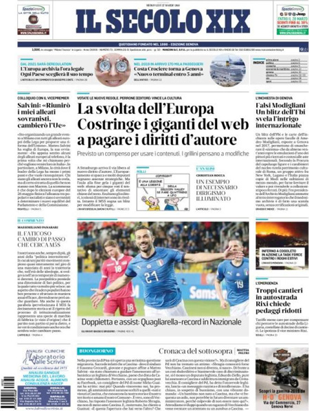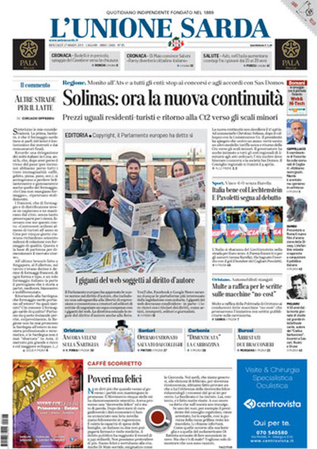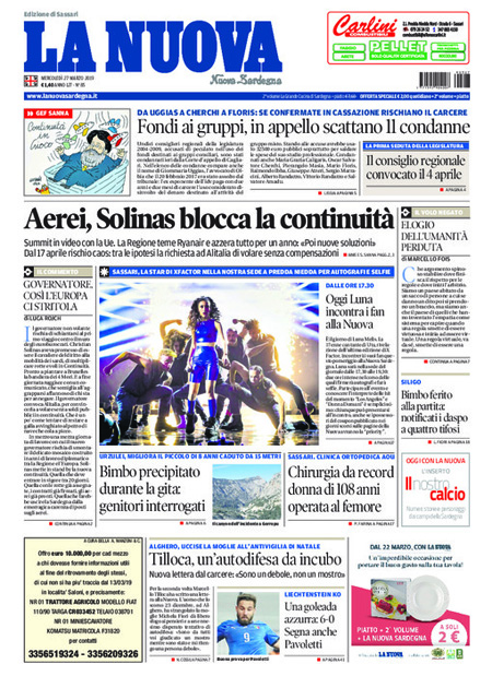 Uncategorized RASSEGNA STAMPA 27-03-2019 RASSEGNA STAMPA 27-03-2019 Da Redazione Cagliaripad - 27 Marzo 2019 ARTICOLI CORRELATIALTRI ARTICOLI DA QUESTO AUTORE Uncategorized “Passerella rovina dune a La Caletta”, esposto cittadini Uncategorized Sardegna: da oggi sei Province e due Città metropolitane Uncategorized Comunali: slittano in autunno anche in Sardegna Uncategorized Muravera, nasce in villaggio turistico area dedicata a ospiti con disabilità Uncategorized Laconi: litigio tra automobilisti, un denunciato per danneggiamento e minacce Uncategorized Cagliari, occhio alle multe: ecco gli autovelox del mese di aprile 2021 - Pubblicità - Ultime notizie Gimbe: “Sardegna agli ultimi posti in Italia per ciclo vaccinale completato” 31 Marzo 2021 Covid in Sardegna, Gimbe: “In una settimana casi in aumento del 56,8%” 31 Marzo 2021 Festino ‘clandestino’ a Cagliari: 12 sanzioni una denuncia 31 Marzo 2021