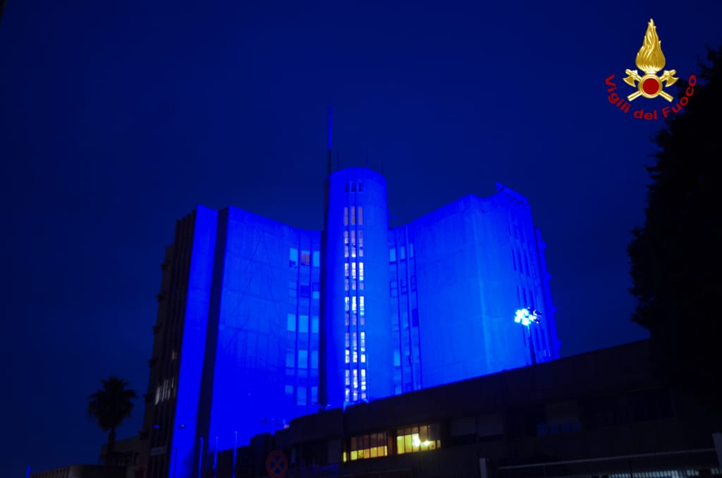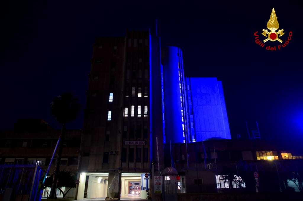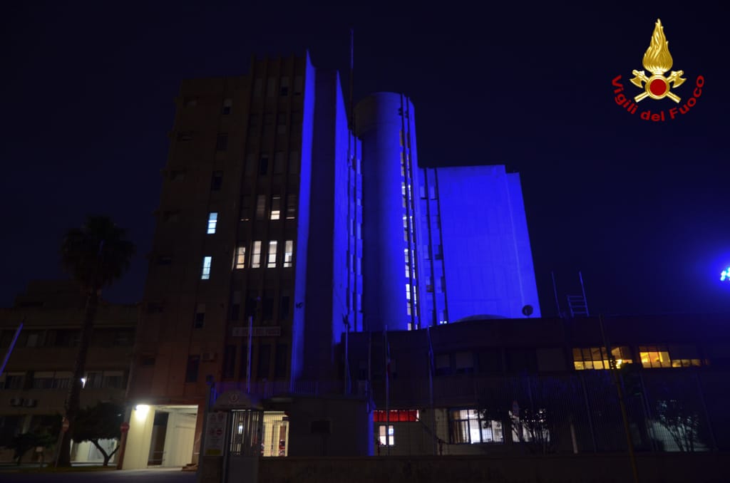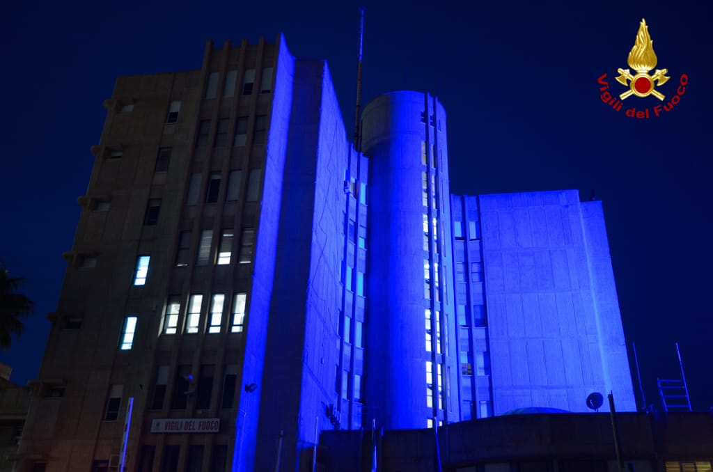 Anche i Vigili del fuoco del Comando di Cagliari hanno voluto esprimere la loro vicinanza e solidarietà illuminando di blu la propria sede.