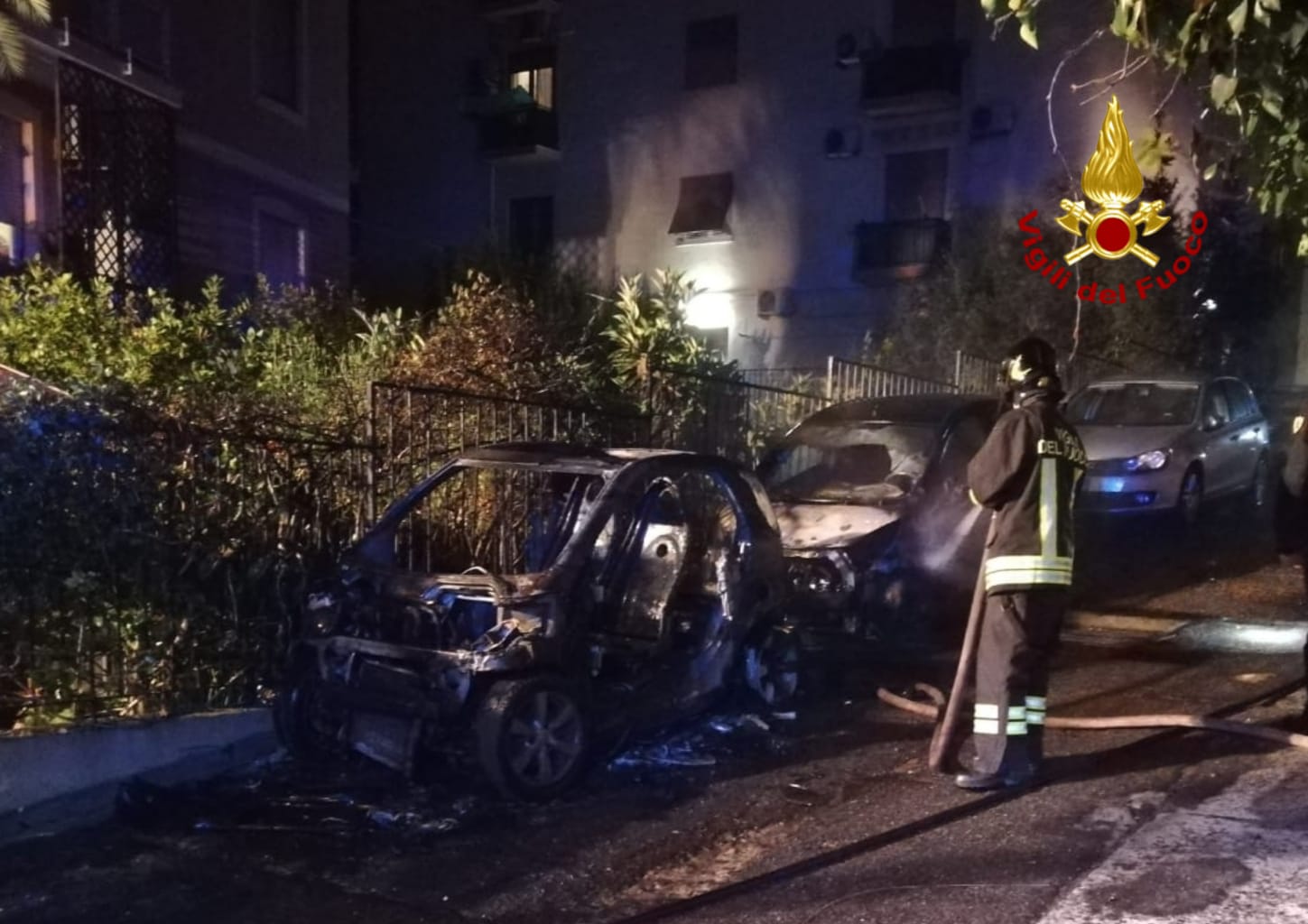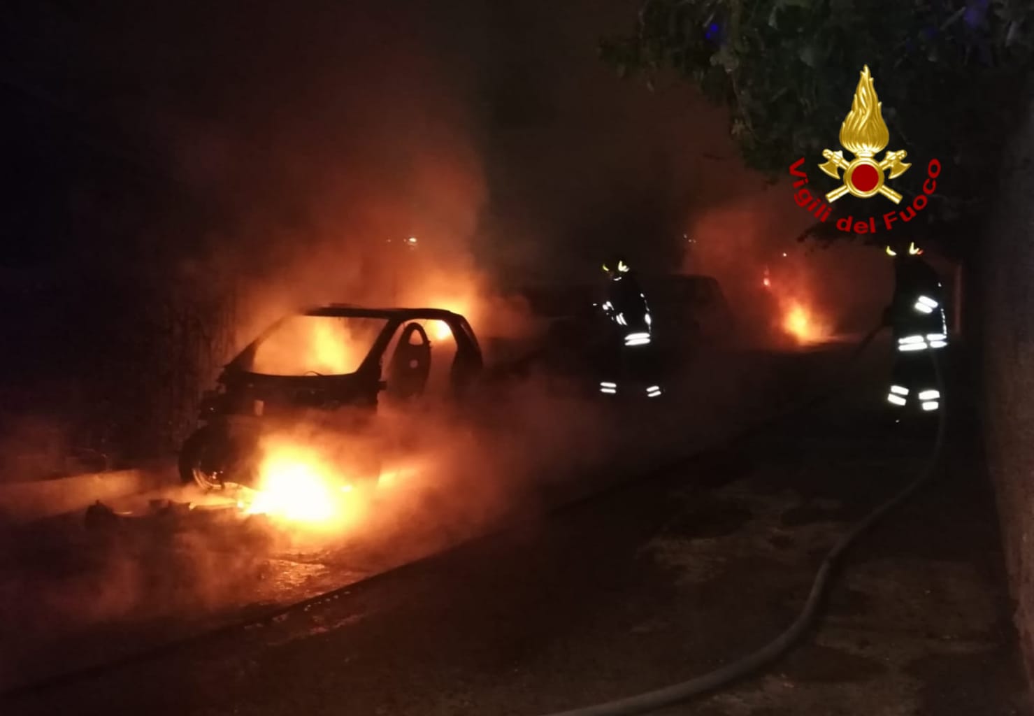 Giunti sul posto con due automezzi e sette operatori hanno provveduto a spegnere le fiamme che hanno coinvolto le auto e messo in sicurezza l’area circostante e la sede stradale, successivamente hanno avviato i rilievi per risalire alle cause del rogo che sono in fase di accertamento.