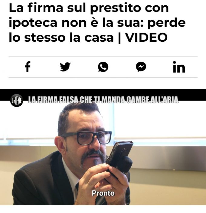 “La banca, una volta saputo della sentenza che dice che la firma di Maria Rosa è senza dubbio falsa, avrebbe dovuto comunicare al giudice della esecuzione immobiliare che quel decreto non era valido, ma non è stato fatto. Luigi Pelazza va allora presso l’istituto di credito per provare a capirne di più ma inizia uno sfiancante rimpallo di responsabilitàda un contatto a un altro”, prosegue il racconto delle Iene.