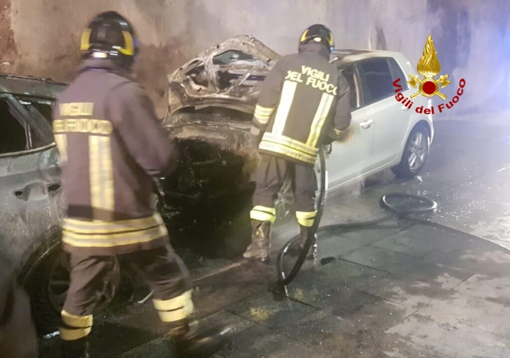 Sul posto sono intervenuti i vigili del fuoco che hanno provveduto a spegnere le fiamme che hanno coinvolto le auto e alla messa in sicurezza dell’area circostante.