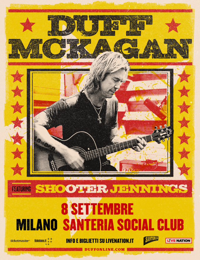 Dopo essere stato in tournée con i Guns ‘N’ Roses per oltre due anni e mezzo con il Not in this Lifetime…Tour, Duff McKegan arriva in Italia per presentare il suo nuovo disco intitolato Tenderness in uscita il prossimo 31 maggio e anticipato dal singolo omonimo prodotto da Shooter Jennings.