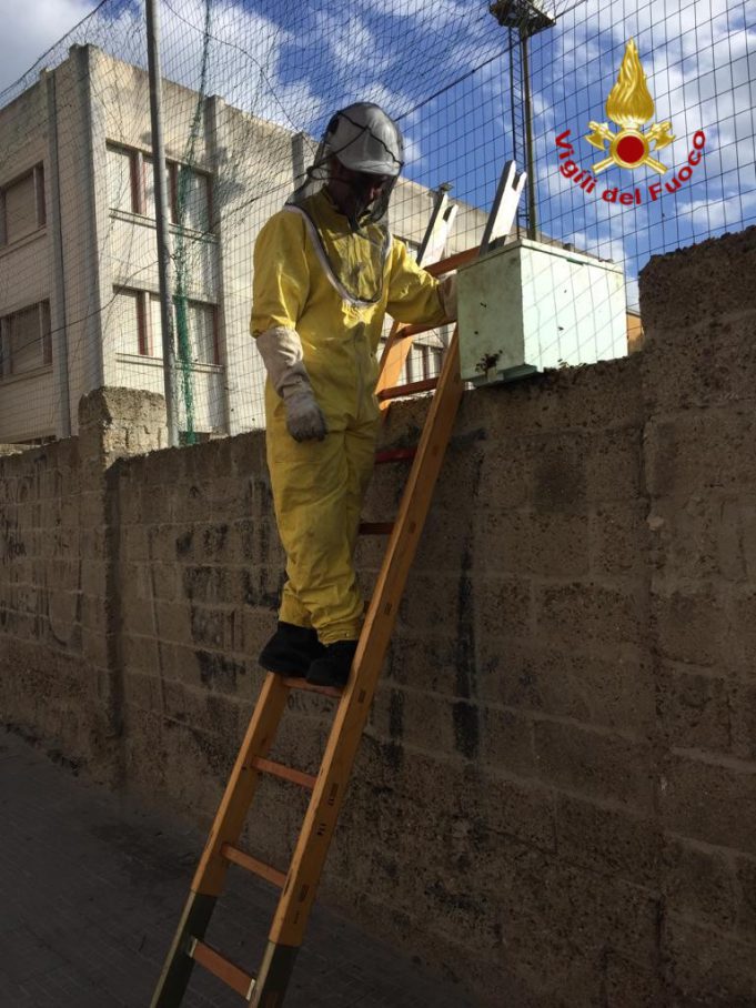 Da segnalazione pervenuta alla Sala operativa del 115, una squadra VVF di Pronto intervento dei Vigili del Fuoco del Comando di Cagliari è intervenuta questo pomeriggio per il recupero di un nido di api nel muro perimetrale di una scuola cittadina nel quartiere di “Is Mirrionis” a Cagliari.