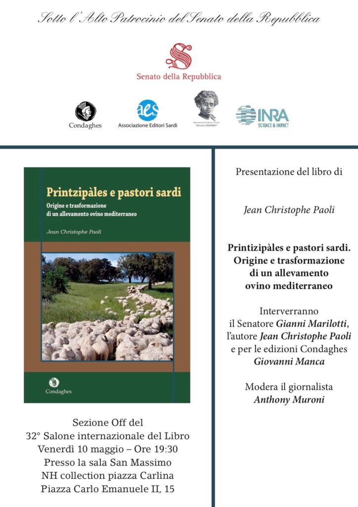 Venerdì 10 maggio, si terrà a Torino, Salone OFF, la presentazione del volume “Printizipàles e pastori sardi. Origine e trasformazione di un allevamento ovino mediterraneo”, sotto l’Alto Patrocinio del Senato della Repubblica.