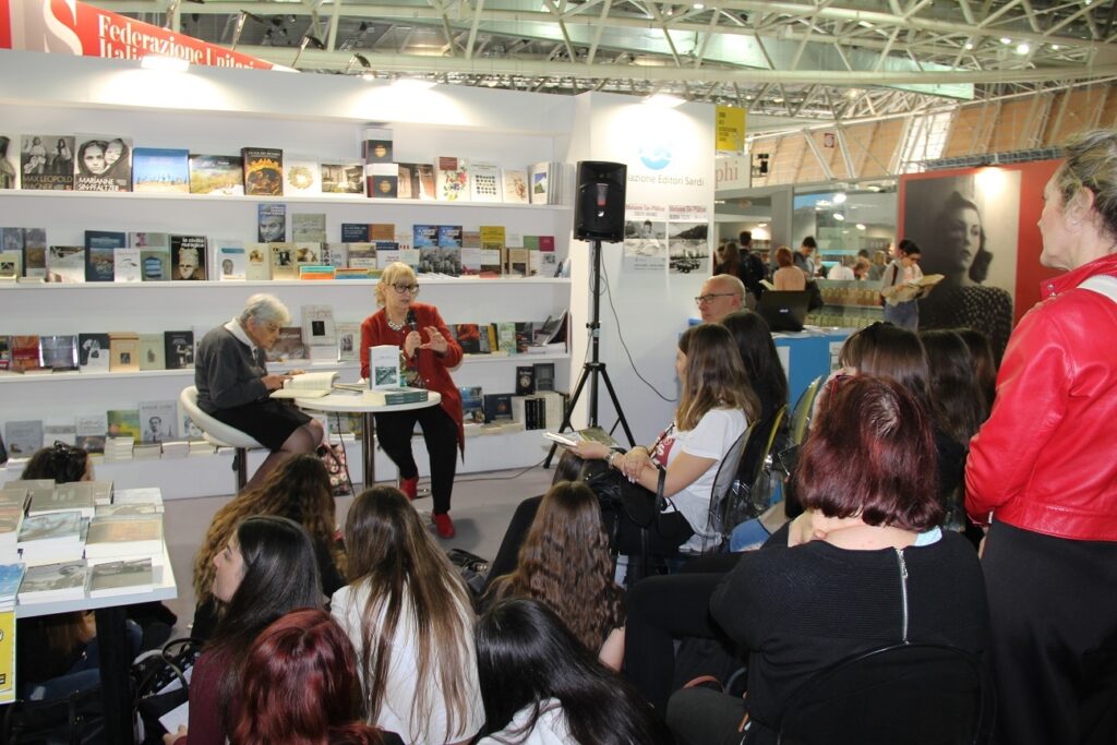 Il tutto in una terza giornata salutata fin dal primo mattino da lunghe file ai cancelli del Lingotto, con linee internet intasate e a tratti inutilizzabili a causa del sovraffollamento. All’interno di una vivace e caotica atmosfera, la stessa che da sempre contraddistingue questa importante manifestazione, lo stand AES ha dato il via ai lavori accogliendo gli studenti del Liceo linguistico Eleonora d’Arborea di Cagliari, ai quali sono stati evidenziati gli aspetti più crudi della guerra e della propaganda attraverso le vicende di Michele Papandrea, “sassarino” ex primo cittadino di Nuoro. La storia di questo personaggio è stata approfondita da Marina Moncelsi nel libro “Michele e gli altri. Un sindaco tra i caduti della prima guerra mondiale”, edito da Aipsa. L’autrice, in compagnia di Annamaria Baldussi, ha parlato ai ragazzi di questo convinto antimilitarista che, ai tempi della Grande Guerra, grazie al ruolo istituzionale avrebbe potuto essere esonerato dal servizio militare, e invece decise di partire, per restare ucciso in battaglia.
