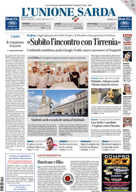 Uncategorized Rassegna stampa 14-05-2019 Rassegna stampa 14-05-2019 Da Redazione Cagliaripad - 14 Maggio 2019 ARTICOLI CORRELATIALTRI ARTICOLI DA QUESTO AUTORE Uncategorized “Passerella rovina dune a La Caletta”, esposto cittadini Uncategorized Sardegna: da oggi sei Province e due Città metropolitane Uncategorized Comunali: slittano in autunno anche in Sardegna Uncategorized Muravera, nasce in villaggio turistico area dedicata a ospiti con disabilità Uncategorized Laconi: litigio tra automobilisti, un denunciato per danneggiamento e minacce Uncategorized Cagliari, occhio alle multe: ecco gli autovelox del mese di aprile 2021 - Pubblicità - Ultime notizie Gimbe: “Sardegna agli ultimi posti in Italia per ciclo vaccinale completato” 31 Marzo 2021 Covid in Sardegna, Gimbe: “In una settimana casi in aumento del 56,8%” 31 Marzo 2021 Festino ‘clandestino’ a Cagliari: 12 sanzioni una denuncia 31 Marzo 2021