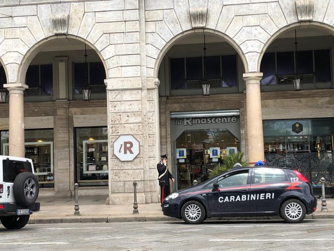 Intervento dei Carabinieri oggi alla Rinascente per una borsa sospetta.