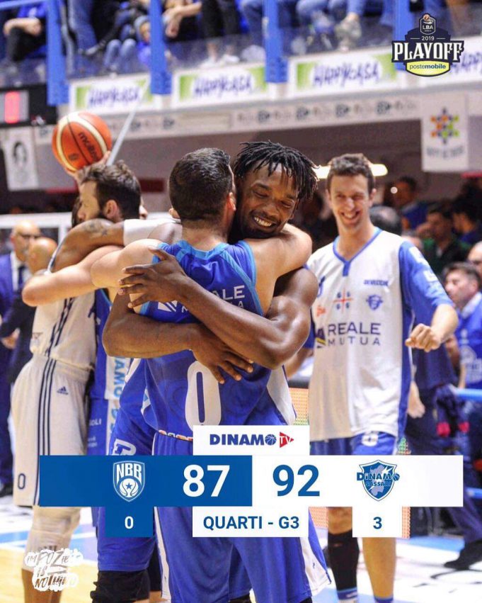 Happy Casa Brindisi-Banco di Sardegna Sassari 87-92 in gara-3 dei playoff del campionato di serie A di basket. Sassari si porta sul 3-0 e si qualifica alle semifinali.