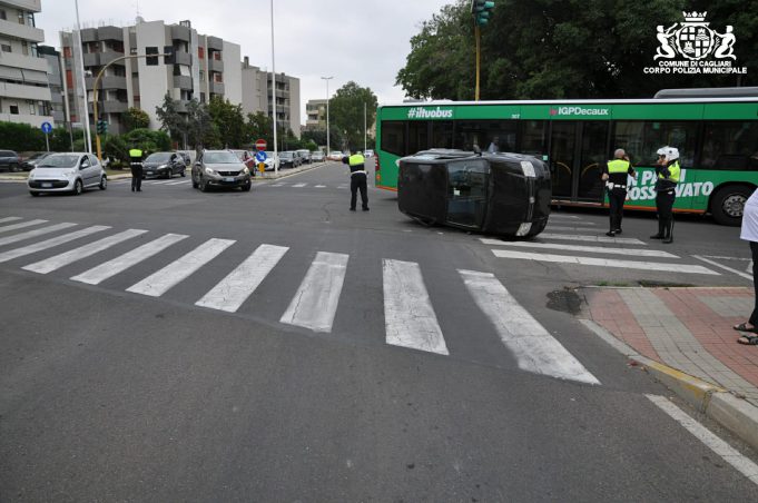 Una Fiat Panda condotta da una35enne di Cagliari, proveniente da via del Canneto e diretta verso via Flavio Gioia, al semaforo con via Vesalio è passata con il giallo e si scontrata con una Renault Clio condotta da una 60enne di Monserrato che, proveniente da via Vesalio, si stava dirigendo in via Torricelli.