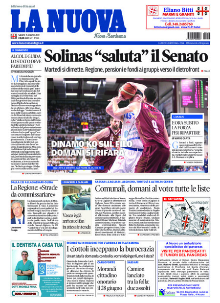 Uncategorized RASSEGNA STAMPA 15-06-2019 RASSEGNA STAMPA 15-06-2019 Da Redazione Cagliaripad - 15 Giugno 2019 ARTICOLI CORRELATIALTRI ARTICOLI DA QUESTO AUTORE Uncategorized “Passerella rovina dune a La Caletta”, esposto cittadini Uncategorized Sardegna: da oggi sei Province e due Città metropolitane Uncategorized Comunali: slittano in autunno anche in Sardegna Uncategorized Muravera, nasce in villaggio turistico area dedicata a ospiti con disabilità Uncategorized Laconi: litigio tra automobilisti, un denunciato per danneggiamento e minacce Uncategorized Cagliari, occhio alle multe: ecco gli autovelox del mese di aprile 2021 - Pubblicità - Ultime notizie Gimbe: “Sardegna agli ultimi posti in Italia per ciclo vaccinale completato” 31 Marzo 2021 Covid in Sardegna, Gimbe: “In una settimana casi in aumento del 56,8%” 31 Marzo 2021 Festino ‘clandestino’ a Cagliari: 12 sanzioni una denuncia 31 Marzo 2021