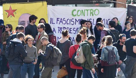 Presidio di solidarietà davanti al tribunale per i combattenti YPG per i quali la procura ha richiesto il provvedimento di sorveglianza speciale, Torino, 25 marzo 2019 ANSA/ ALESSANDRO DI MARCO