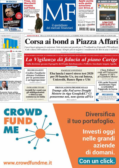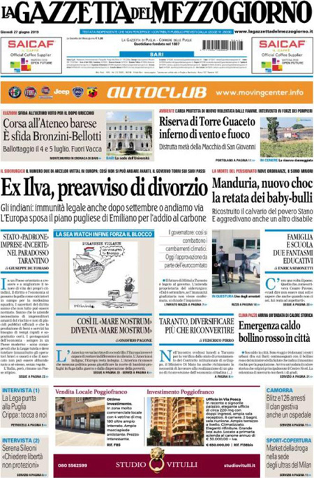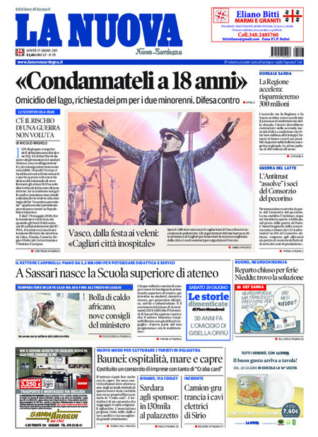 Uncategorized Rassegna stampa 27-06-2019 Rassegna stampa 27-06-2019 Da Redazione Cagliaripad - 27 Giugno 2019 ARTICOLI CORRELATIALTRI ARTICOLI DA QUESTO AUTORE Uncategorized “Passerella rovina dune a La Caletta”, esposto cittadini Uncategorized Sardegna: da oggi sei Province e due Città metropolitane Uncategorized Comunali: slittano in autunno anche in Sardegna Uncategorized Muravera, nasce in villaggio turistico area dedicata a ospiti con disabilità Uncategorized Laconi: litigio tra automobilisti, un denunciato per danneggiamento e minacce Uncategorized Cagliari, occhio alle multe: ecco gli autovelox del mese di aprile 2021 - Pubblicità - Ultime notizie Gimbe: “Sardegna agli ultimi posti in Italia per ciclo vaccinale completato” 31 Marzo 2021 Covid in Sardegna, Gimbe: “In una settimana casi in aumento del 56,8%” 31 Marzo 2021 Festino ‘clandestino’ a Cagliari: 12 sanzioni una denuncia 31 Marzo 2021