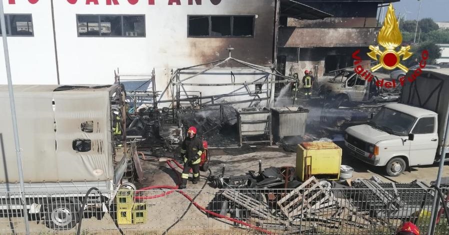 All’arrivo sul posto il rogo aveva coinvolto parte della struttura, uffici e il capannone con le attrezzature, coinvolti dalle fiamme anche vetture e automezzi nel piazzale di competenza della struttura.