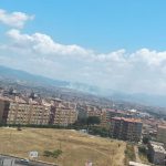 L’area colpita dal fuoco è vasta, anche per via del forte vento che sta mettendo in difficoltà i volontari sul posto per domare le fiamme. L’incendo si è sviluppato per il forte vento e le temperature elevate, che superano i 35 gradi.