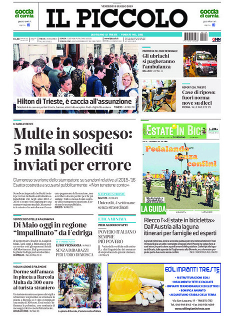 Uncategorized Rassegna stampa 19 -07-2019 Rassegna stampa 19 -07-2019 Da Redazione Cagliaripad - 19 Luglio 2019 ARTICOLI CORRELATIALTRI ARTICOLI DA QUESTO AUTORE Uncategorized “Passerella rovina dune a La Caletta”, esposto cittadini Uncategorized Sardegna: da oggi sei Province e due Città metropolitane Uncategorized Comunali: slittano in autunno anche in Sardegna Uncategorized Muravera, nasce in villaggio turistico area dedicata a ospiti con disabilità Uncategorized Laconi: litigio tra automobilisti, un denunciato per danneggiamento e minacce Uncategorized Cagliari, occhio alle multe: ecco gli autovelox del mese di aprile 2021 - Pubblicità - Ultime notizie Gimbe: “Sardegna agli ultimi posti in Italia per ciclo vaccinale completato” 31 Marzo 2021 Covid in Sardegna, Gimbe: “In una settimana casi in aumento del 56,8%” 31 Marzo 2021 Festino ‘clandestino’ a Cagliari: 12 sanzioni una denuncia 31 Marzo 2021