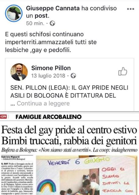 "Ammazzateli tutti ste lesbiche, gay e pedofili". Sono le parole choc scritte su Facebook da Giuseppe Cannata, di Fratelli d'Italia