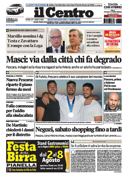 Uncategorized RASSEGNA STAMPA 07-08-2019 RASSEGNA STAMPA 07-08-2019 Da Redazione Cagliaripad - 7 Agosto 2019 ARTICOLI CORRELATIALTRI ARTICOLI DA QUESTO AUTORE Uncategorized “Passerella rovina dune a La Caletta”, esposto cittadini Uncategorized Sardegna: da oggi sei Province e due Città metropolitane Uncategorized Comunali: slittano in autunno anche in Sardegna Uncategorized Muravera, nasce in villaggio turistico area dedicata a ospiti con disabilità Uncategorized Laconi: litigio tra automobilisti, un denunciato per danneggiamento e minacce Uncategorized Cagliari, occhio alle multe: ecco gli autovelox del mese di aprile 2021 - Pubblicità - Ultime notizie Gimbe: “Sardegna agli ultimi posti in Italia per ciclo vaccinale completato” 31 Marzo 2021 Covid in Sardegna, Gimbe: “In una settimana casi in aumento del 56,8%” 31 Marzo 2021 Festino ‘clandestino’ a Cagliari: 12 sanzioni una denuncia 31 Marzo 2021