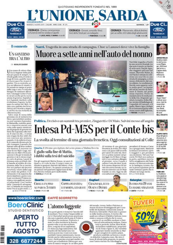 Uncategorized RASSEGNA STAMPA 27-08-2019 RASSEGNA STAMPA 27-08-2019 Da Redazione Cagliaripad - 27 Agosto 2019 ARTICOLI CORRELATIALTRI ARTICOLI DA QUESTO AUTORE Uncategorized “Passerella rovina dune a La Caletta”, esposto cittadini Uncategorized Sardegna: da oggi sei Province e due Città metropolitane Uncategorized Comunali: slittano in autunno anche in Sardegna Uncategorized Muravera, nasce in villaggio turistico area dedicata a ospiti con disabilità Uncategorized Laconi: litigio tra automobilisti, un denunciato per danneggiamento e minacce Uncategorized Cagliari, occhio alle multe: ecco gli autovelox del mese di aprile 2021 - Pubblicità - Ultime notizie Gimbe: “Sardegna agli ultimi posti in Italia per ciclo vaccinale completato” 31 Marzo 2021 Covid in Sardegna, Gimbe: “In una settimana casi in aumento del 56,8%” 31 Marzo 2021 Festino ‘clandestino’ a Cagliari: 12 sanzioni una denuncia 31 Marzo 2021