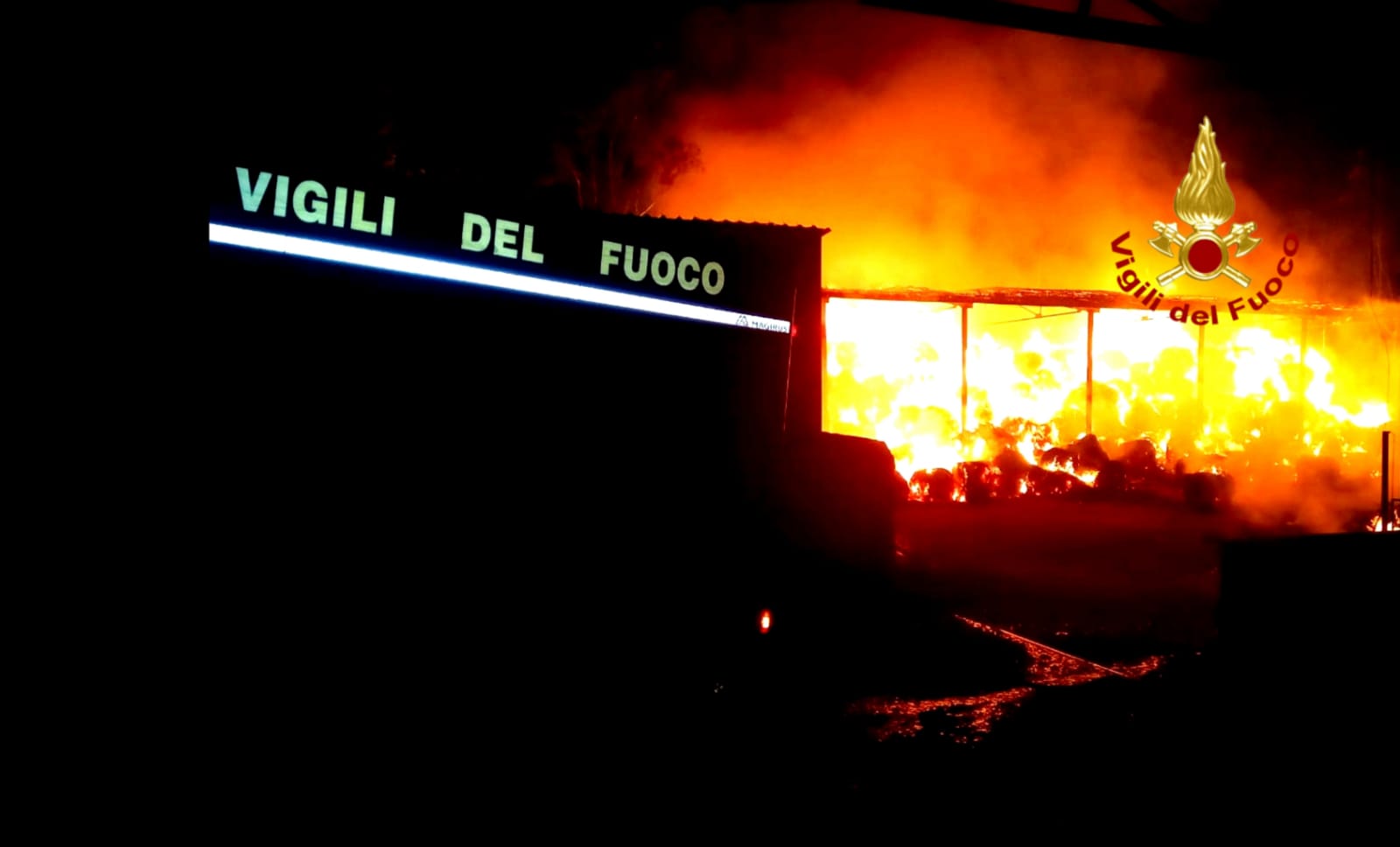 Sul posto sono intervenuti i vigili del fuoco con tre automezzi per spegnere le fiamme che hanno distrutto oltre 700 rotoballe di fieno, alcune attrezzature e un silos che contiene il mangime.