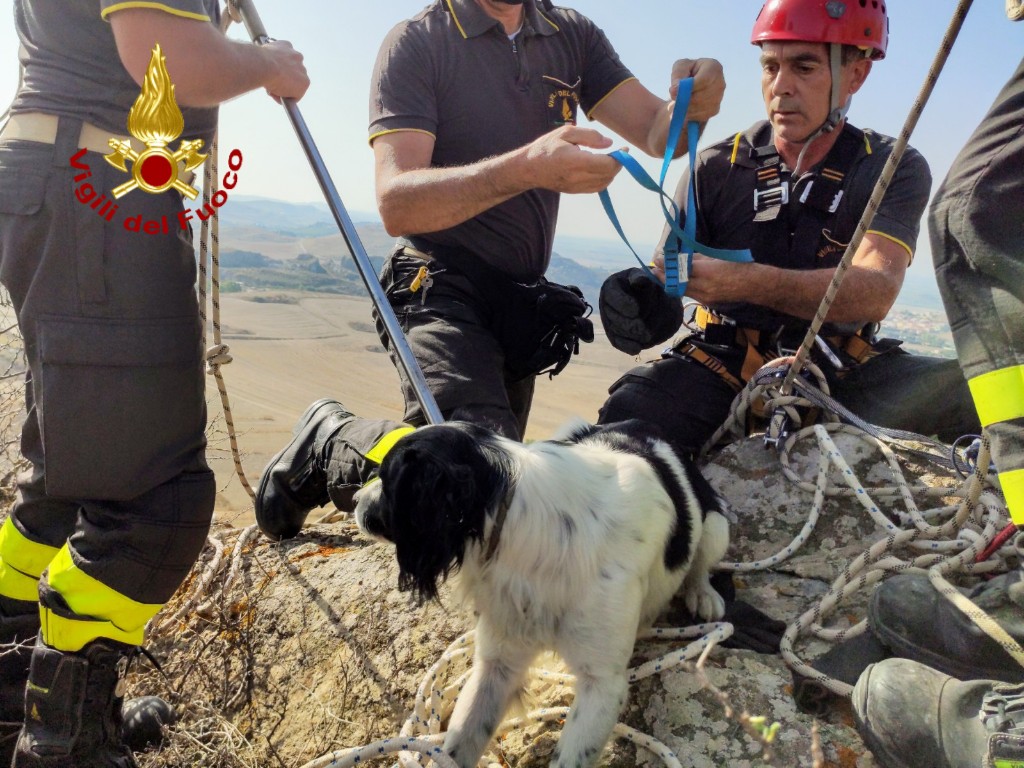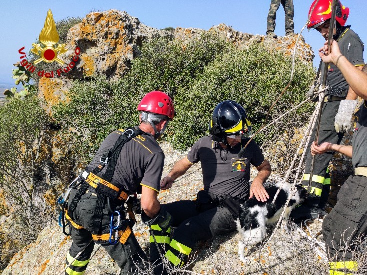 I pompieri hanno subito inviato sul posto una squadra del distaccamento di Sanluri: si quindi sono imbragati e hanno raggiunto il punto in cui si trovava il cane, portandolo in salvo.