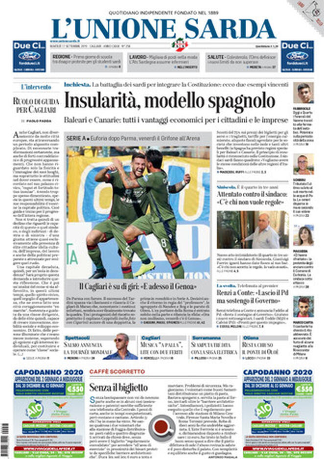 Uncategorized RASSEGNA STAMPA 17.09.2019 RASSEGNA STAMPA 17.09.2019 Da Redazione Cagliaripad - 17 Settembre 2019 ARTICOLI CORRELATIALTRI ARTICOLI DA QUESTO AUTORE Uncategorized “Passerella rovina dune a La Caletta”, esposto cittadini Uncategorized Sardegna: da oggi sei Province e due Città metropolitane Uncategorized Comunali: slittano in autunno anche in Sardegna Uncategorized Muravera, nasce in villaggio turistico area dedicata a ospiti con disabilità Uncategorized Laconi: litigio tra automobilisti, un denunciato per danneggiamento e minacce Uncategorized Cagliari, occhio alle multe: ecco gli autovelox del mese di aprile 2021 - Pubblicità - Ultime notizie Gimbe: “Sardegna agli ultimi posti in Italia per ciclo vaccinale completato” 31 Marzo 2021 Covid in Sardegna, Gimbe: “In una settimana casi in aumento del 56,8%” 31 Marzo 2021 Festino ‘clandestino’ a Cagliari: 12 sanzioni una denuncia 31 Marzo 2021