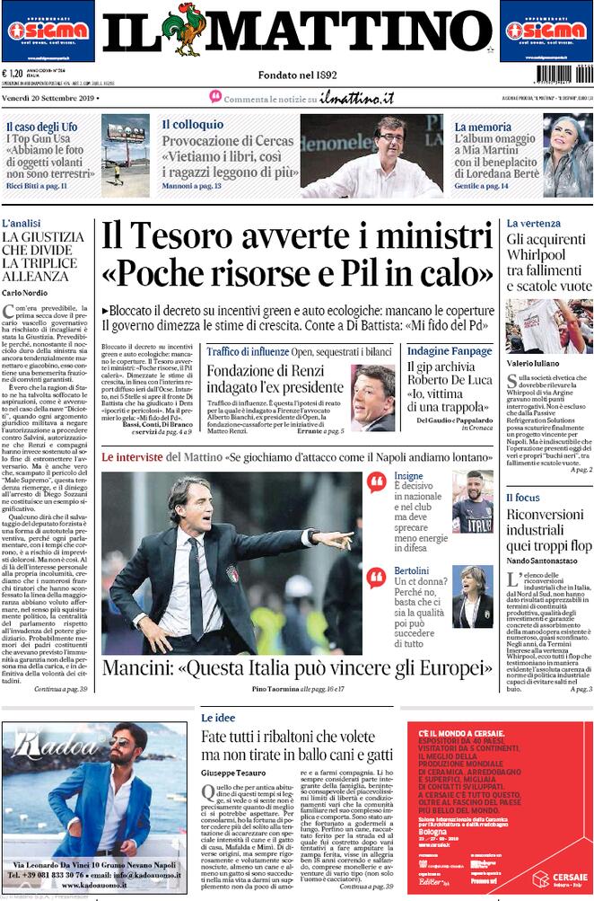 RASSEGNA STAMPA DEL 20.09.2019