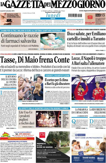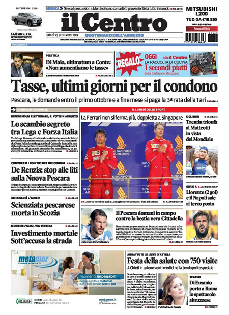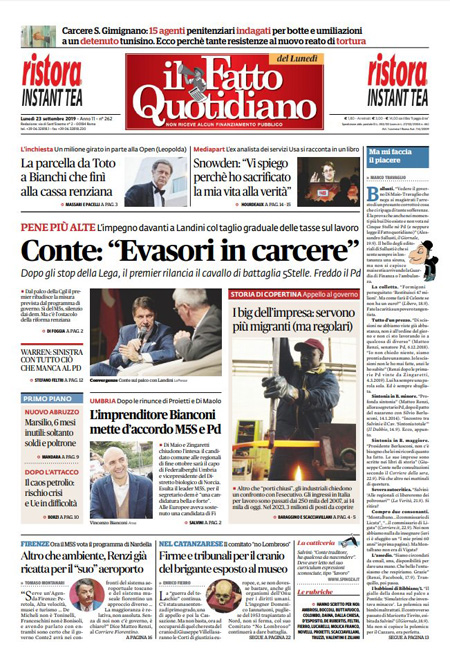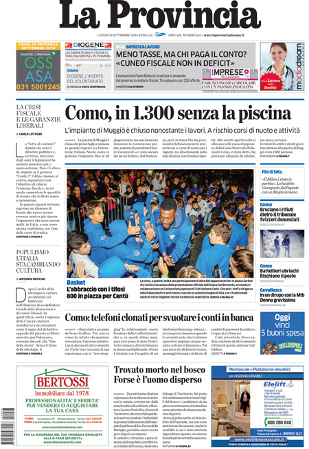 Uncategorized RASSEGNA STAMPA 23-09-2019 RASSEGNA STAMPA 23-09-2019 Da Redazione Cagliaripad (Archivio) - 23 Settembre 2019 TES ARTICOLI CORRELATIALTRI ARTICOLI DA QUESTO AUTORE Uncategorized “Passerella rovina dune a La Caletta”, esposto cittadini Uncategorized Sardegna: da oggi sei Province e due Città metropolitane Uncategorized Comunali: slittano in autunno anche in Sardegna Uncategorized Muravera, nasce in villaggio turistico area dedicata a ospiti con disabilità Uncategorized Laconi: litigio tra automobilisti, un denunciato per danneggiamento e minacce Uncategorized Cagliari, occhio alle multe: ecco gli autovelox del mese di aprile 2021 - Pubblicità - Ultime notizie Gimbe: “Sardegna agli ultimi posti in Italia per ciclo vaccinale completato” 31 Marzo 2021 Covid in Sardegna, Gimbe: “In una settimana casi in aumento del 56,8%” 31 Marzo 2021 Festino ‘clandestino’ a Cagliari: 12 sanzioni una denuncia 31 Marzo 2021