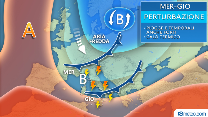 “Il maltempo sarà accompagnato da un calo delle temperature che porrà fine al caldo anomalo di questi giorni su diverse aree d’Italia. Nello specifico mercoledì il calo termico sarà avvertibile soprattutto sul Nordest, giovedì su gran parte del Centrosud ma in modo particolare lungo le regioni adriatiche, dove si potranno perdere anche oltre 6-8 gradi. Le temperature notturne potranno così scendere anche sotto i 10-12 gradi sulle aree interne del Centronord. Da segnalare infine il vento che soffierà a tratti forte, dapprima di Libeccio e Scirocco, da giovedì di Maestrale, Tramontana e Grecale, con mari molto mossi”.