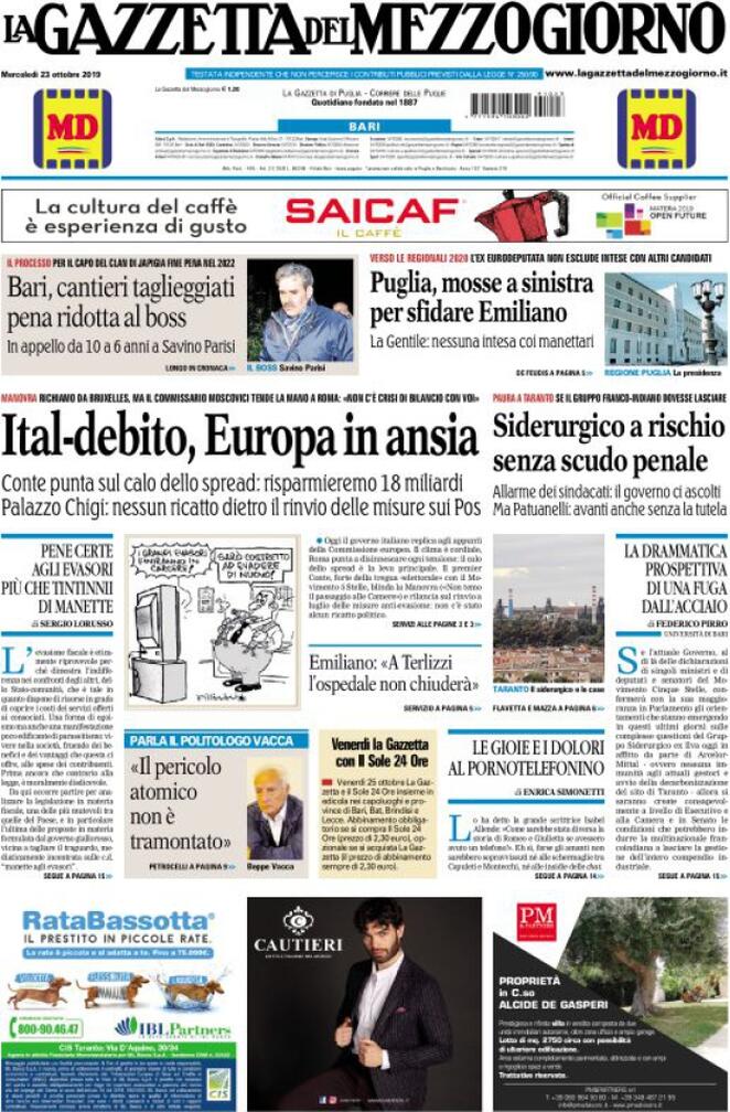 Uncategorized Rassegna Stampa del 23.10.2019 Rassegna Stampa del 23.10.2019 Da Redazione Cagliaripad (Archivio) - 23 Ottobre 2019 ARTICOLI CORRELATIALTRI ARTICOLI DA QUESTO AUTORE Uncategorized “Passerella rovina dune a La Caletta”, esposto cittadini Uncategorized Sardegna: da oggi sei Province e due Città metropolitane Uncategorized Comunali: slittano in autunno anche in Sardegna Uncategorized Muravera, nasce in villaggio turistico area dedicata a ospiti con disabilità Uncategorized Laconi: litigio tra automobilisti, un denunciato per danneggiamento e minacce Uncategorized Cagliari, occhio alle multe: ecco gli autovelox del mese di aprile 2021 - Pubblicità - Ultime notizie Gimbe: “Sardegna agli ultimi posti in Italia per ciclo vaccinale completato” 31 Marzo 2021 Covid in Sardegna, Gimbe: “In una settimana casi in aumento del 56,8%” 31 Marzo 2021 Festino ‘clandestino’ a Cagliari: 12 sanzioni una denuncia 31 Marzo 2021