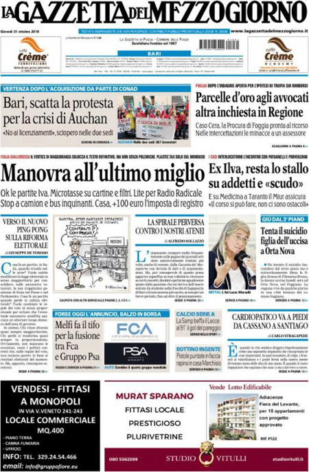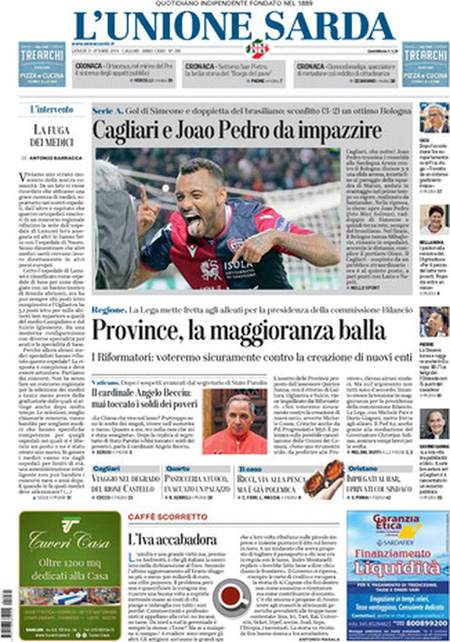 Uncategorized RASSEGNA STANZA 31-10-2019 RASSEGNA STANZA 31-10-2019 Da Redazione Cagliaripad - 31 Ottobre 2019 TES TES ARTICOLI CORRELATIALTRI ARTICOLI DA QUESTO AUTORE Uncategorized “Passerella rovina dune a La Caletta”, esposto cittadini Uncategorized Sardegna: da oggi sei Province e due Città metropolitane Uncategorized Comunali: slittano in autunno anche in Sardegna Uncategorized Muravera, nasce in villaggio turistico area dedicata a ospiti con disabilità Uncategorized Laconi: litigio tra automobilisti, un denunciato per danneggiamento e minacce Uncategorized Cagliari, occhio alle multe: ecco gli autovelox del mese di aprile 2021 - Pubblicità - Ultime notizie Gimbe: “Sardegna agli ultimi posti in Italia per ciclo vaccinale completato” 31 Marzo 2021 Covid in Sardegna, Gimbe: “In una settimana casi in aumento del 56,8%” 31 Marzo 2021 Festino ‘clandestino’ a Cagliari: 12 sanzioni una denuncia 31 Marzo 2021