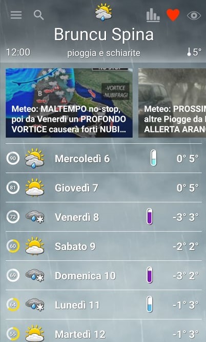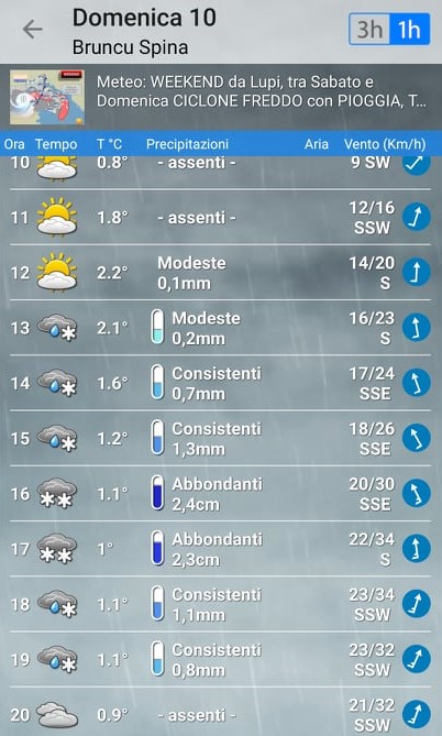 Venerdì avremo instabilità a tratti, con un robusto calo delle temperature che potrebbe portare le prime nevicate sul massiccio del Gennargentu. La situazione dovrebbe complicarsi ulteriormente tra sabato e domenica, quando un nuovo impulso d’aria fredda potrebbe dar luogo a un vortice di bassa pressione proprio a ridosso della nostra isola.