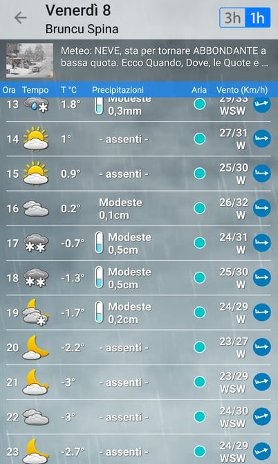 Non solo, come detto ci aspettiamo nevicate con quote che potrebbero abbassarsi sino ai 1300-1400 metri.