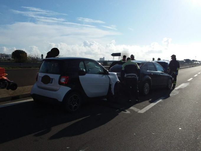 Tamponamento a catena al km 2 nella Ss 195 direzione città che ha visto coinvolte una smart condotta da un 40enne, una Ford Focus condotta da un 50enne, una Toyota Aygò guidata da un 29enne e una Toyota Yaris condotta da un 34enne, tutti residenti fuori città.
