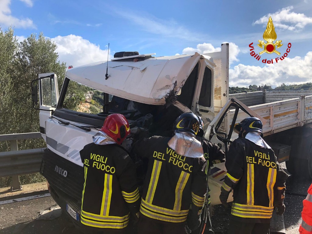 La squadra si è impegnata a estrarre uno dei due autisti, incastrato all’interno delle lamiere, successivamente trasportato all’ospedale Brotzu in elisoccorso.