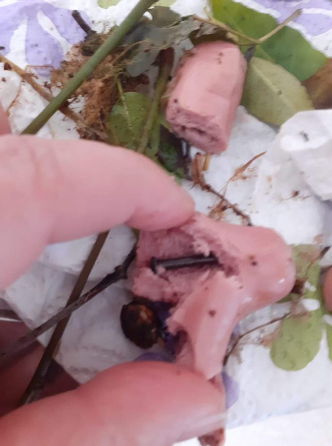 Le foto dei bocconi avvelenati con all’interno i chiodi sono state fatte oggi e l’invito a tutti è di tenere gli occhi aperti.
