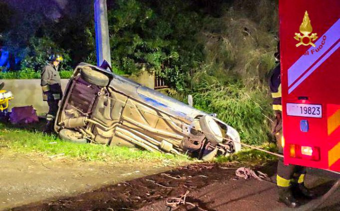 Sul posto sono intervenuti i vigili del fuoco che hanno  messo in sicurezza la vettura ed estratto una persona che è stata trasportata in ospedale.