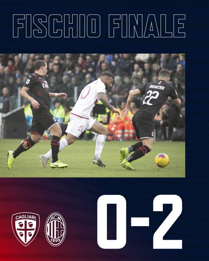 Il Milan ha battuto il Cagliari 2-0 nel primo anticipo della 19/a giornata di andata del campionato di serie A giocato alla Sardegna Arena.