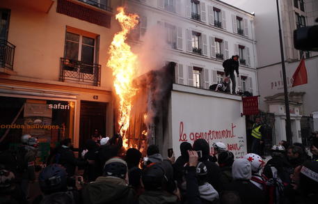 Gruppi di black bloc hanno appiccato le fiamme a un grosso pannello pubblicitario accanto a un hotel a pochi metri dalla Bastiglia, rendendo necessario l’afflusso di camion di pompieri mentre sfila il corteo. L’arrivo della manifestazione sulla piazza della Bastiglia è avvenuto mentre si levavano alte, per circa 15 minuti, le fiamme dal pannello incendiato. Danneggiata la facciata del palazzo e l’ingresso dell’hotel.