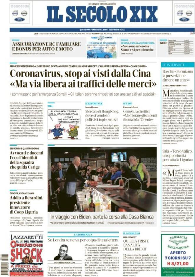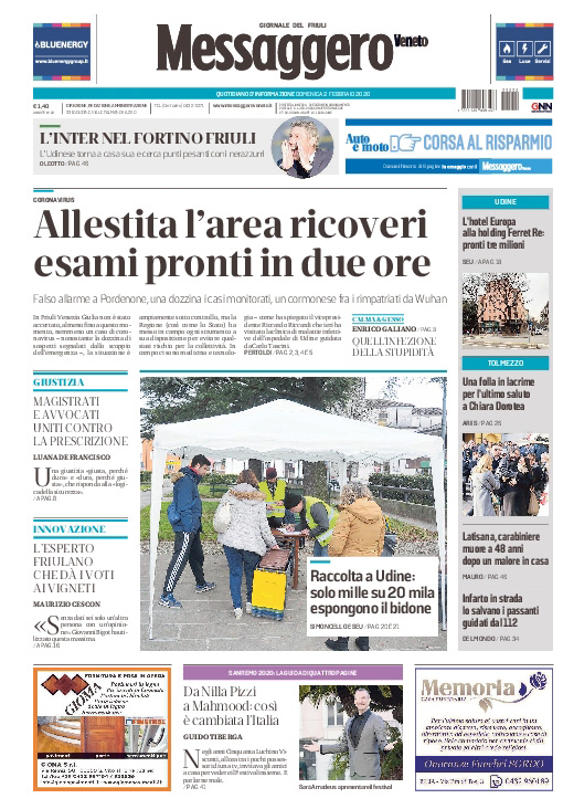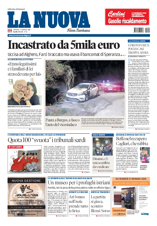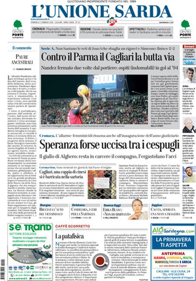 Uncategorized RASSEGNA STAMPA 02-02-2020 RASSEGNA STAMPA 02-02-2020 Da Redazione Cagliaripad - 2 Febbraio 2020 ARTICOLI CORRELATIALTRI ARTICOLI DA QUESTO AUTORE Uncategorized “Passerella rovina dune a La Caletta”, esposto cittadini Uncategorized Sardegna: da oggi sei Province e due Città metropolitane Uncategorized Comunali: slittano in autunno anche in Sardegna Uncategorized Muravera, nasce in villaggio turistico area dedicata a ospiti con disabilità Uncategorized Laconi: litigio tra automobilisti, un denunciato per danneggiamento e minacce Uncategorized Cagliari, occhio alle multe: ecco gli autovelox del mese di aprile 2021 - Pubblicità - Ultime notizie Gimbe: “Sardegna agli ultimi posti in Italia per ciclo vaccinale completato” 31 Marzo 2021 Covid in Sardegna, Gimbe: “In una settimana casi in aumento del 56,8%” 31 Marzo 2021 Festino ‘clandestino’ a Cagliari: 12 sanzioni una denuncia 31 Marzo 2021