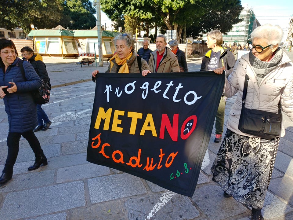 Sono tanti gli striscioni che hanno accompagnato il corteo degli studenti che questa mattina a Cagliari hanno raccolto l’invito di Fridays for future e sono scesi in piazza per dire no al metano nell’isola.