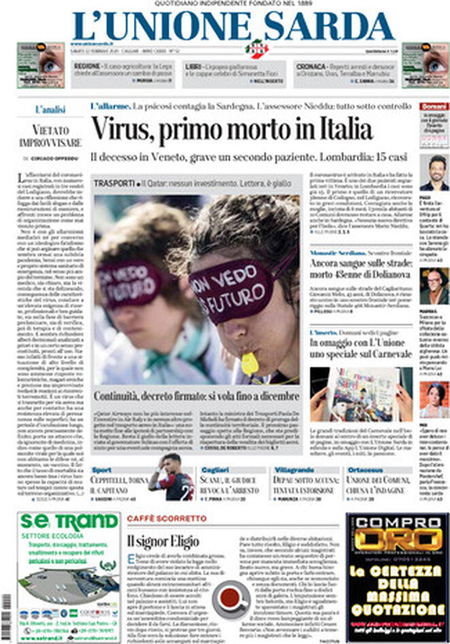 Uncategorized RASSEGNA STAMPA 22-02-2019 RASSEGNA STAMPA 22-02-2019 Da Redazione Cagliaripad - 22 Febbraio 2020 TES TES ARTICOLI CORRELATIALTRI ARTICOLI DA QUESTO AUTORE Uncategorized “Passerella rovina dune a La Caletta”, esposto cittadini Uncategorized Sardegna: da oggi sei Province e due Città metropolitane Uncategorized Comunali: slittano in autunno anche in Sardegna Uncategorized Muravera, nasce in villaggio turistico area dedicata a ospiti con disabilità Uncategorized Laconi: litigio tra automobilisti, un denunciato per danneggiamento e minacce Uncategorized Cagliari, occhio alle multe: ecco gli autovelox del mese di aprile 2021 - Pubblicità - Ultime notizie Gimbe: “Sardegna agli ultimi posti in Italia per ciclo vaccinale completato” 31 Marzo 2021 Covid in Sardegna, Gimbe: “In una settimana casi in aumento del 56,8%” 31 Marzo 2021 Festino ‘clandestino’ a Cagliari: 12 sanzioni una denuncia 31 Marzo 2021